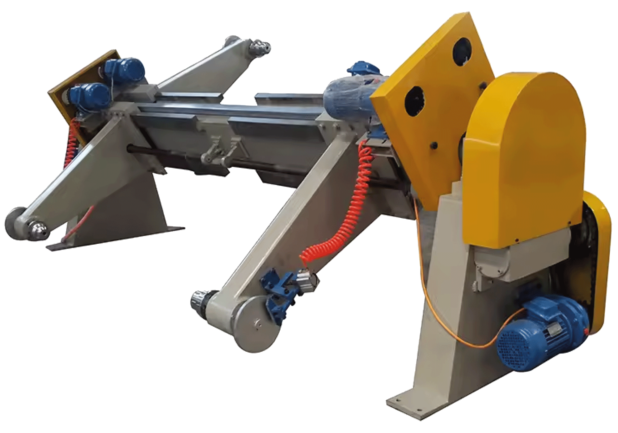 Smotorized lifting and lowering, clamping, releasing, right-left adjustment of the rill paper pneumatic or manual control of web tension.