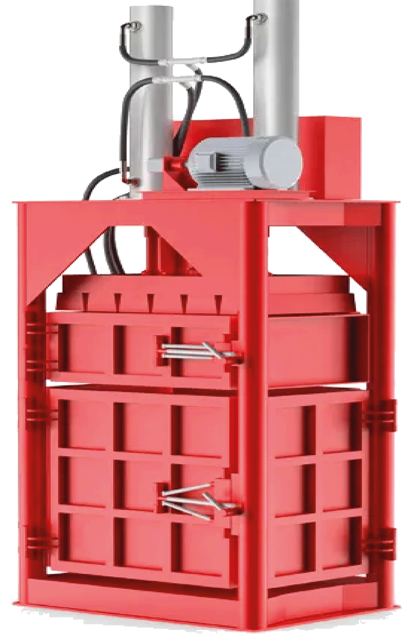 A Hydraulic Vertical Baler is a stationary, industrial machine that uses a powerful hydraulic cylinder to compress loose, recyclable, or waste materials (typically cardboard, paper, plastic, or light metals) into dense, manageable bales. The term “vertical” refers to the direction of the pressing plate, which moves downward from the top of the machine into a vertically oriented baling chamber.